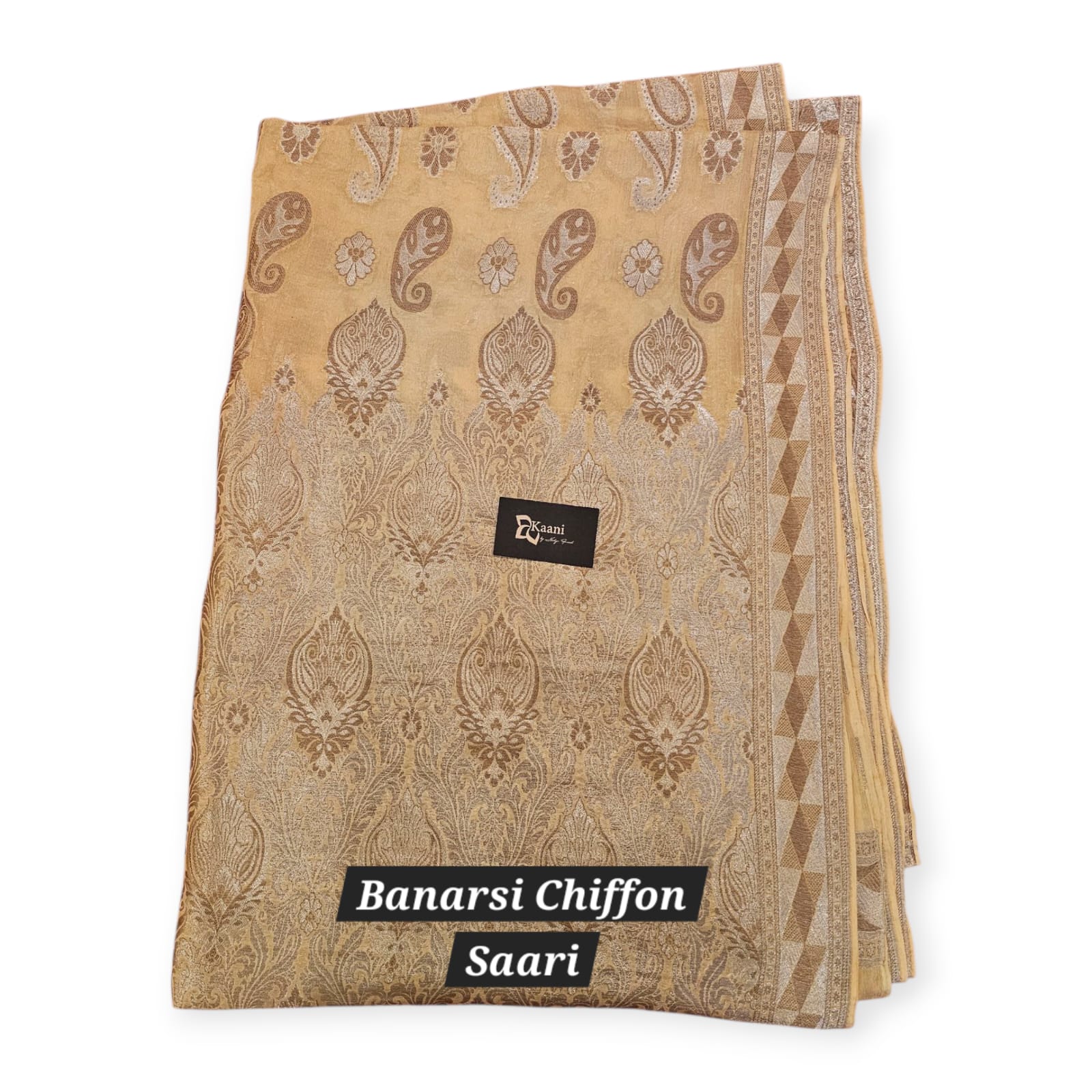 Elevate your style with our exquisite Banarsi Chiffon Sarees – intricate designs, luxurious feel, and effortless elegance. Perfect for any special occasion!