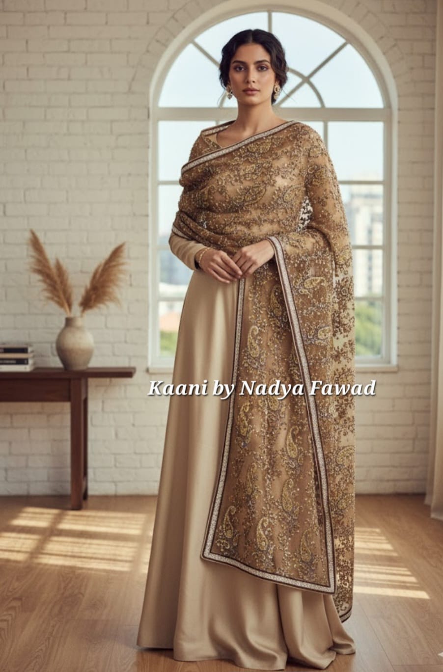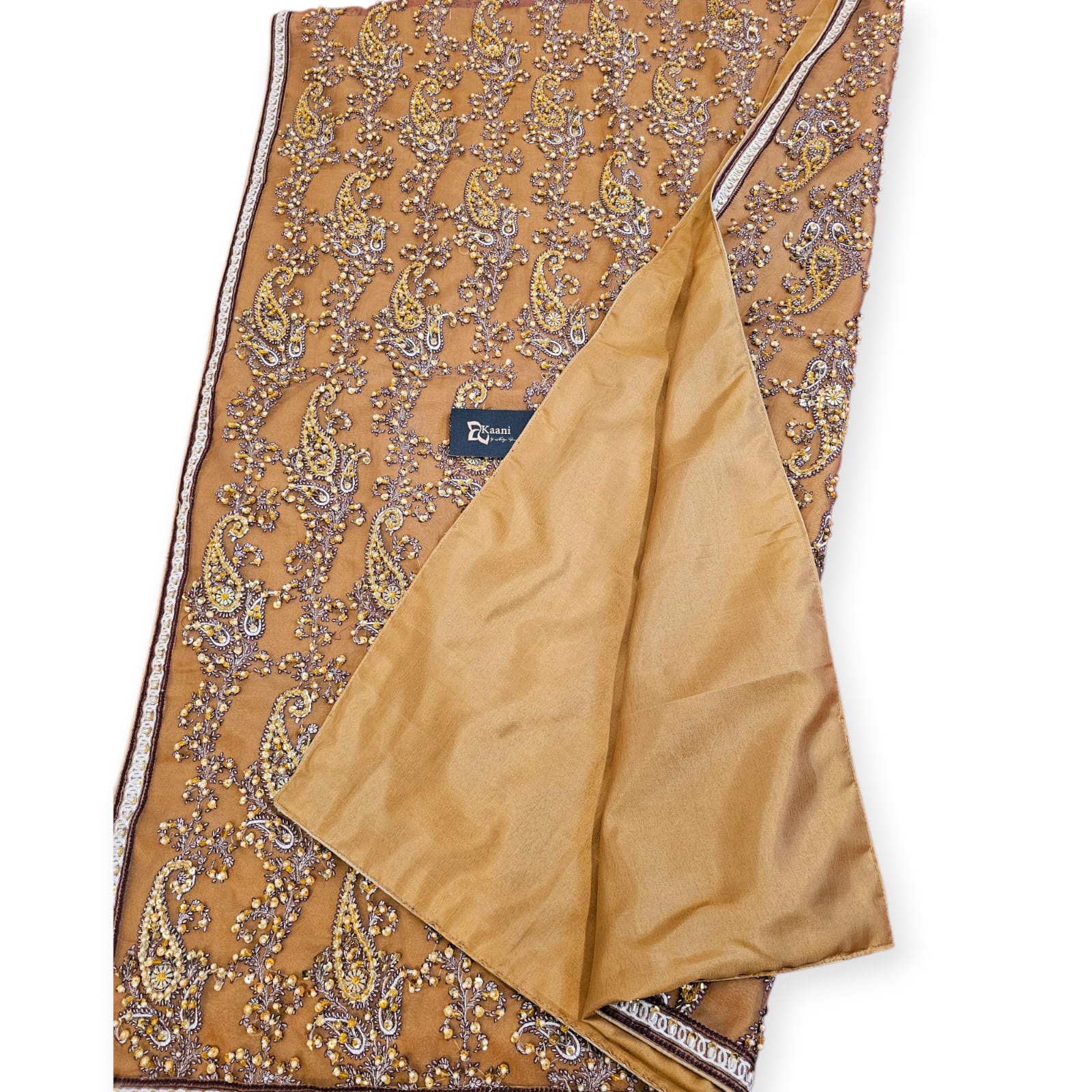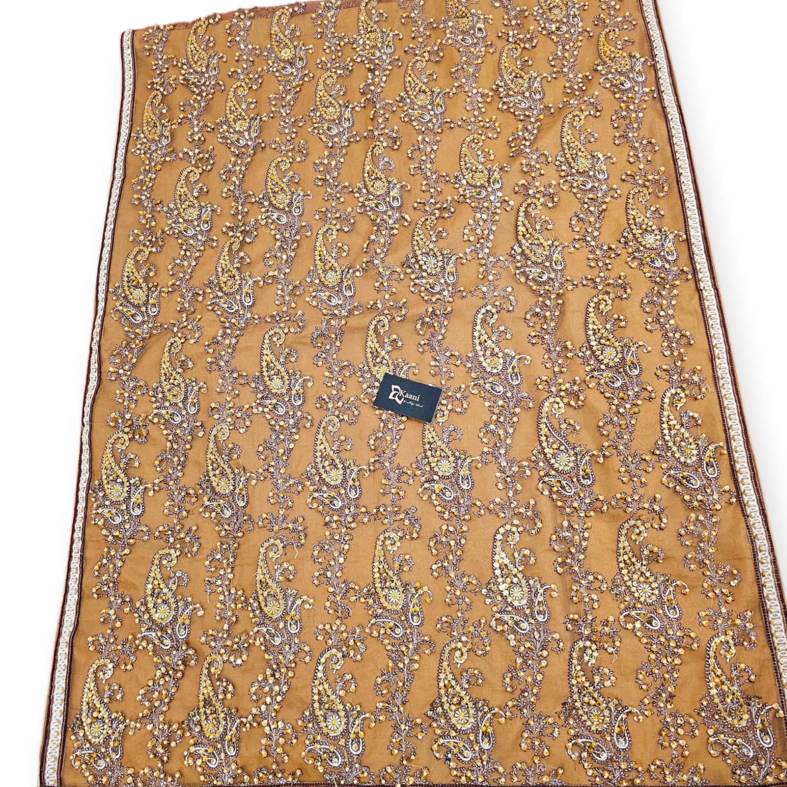 Beige Silk Shawl with Heavy Embellishment